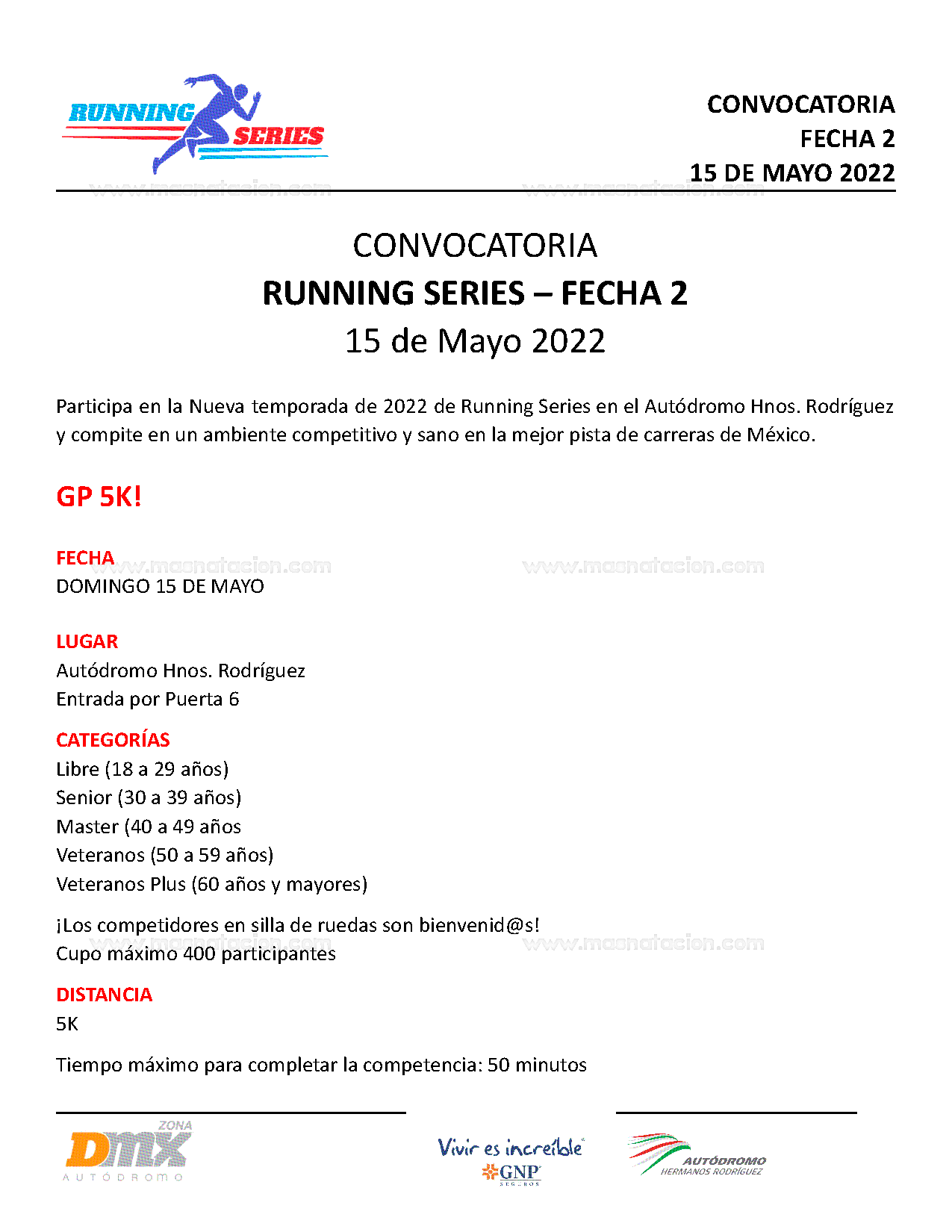 | 5K | Libre (18 a 29 Años) | Femenil, Varonil |