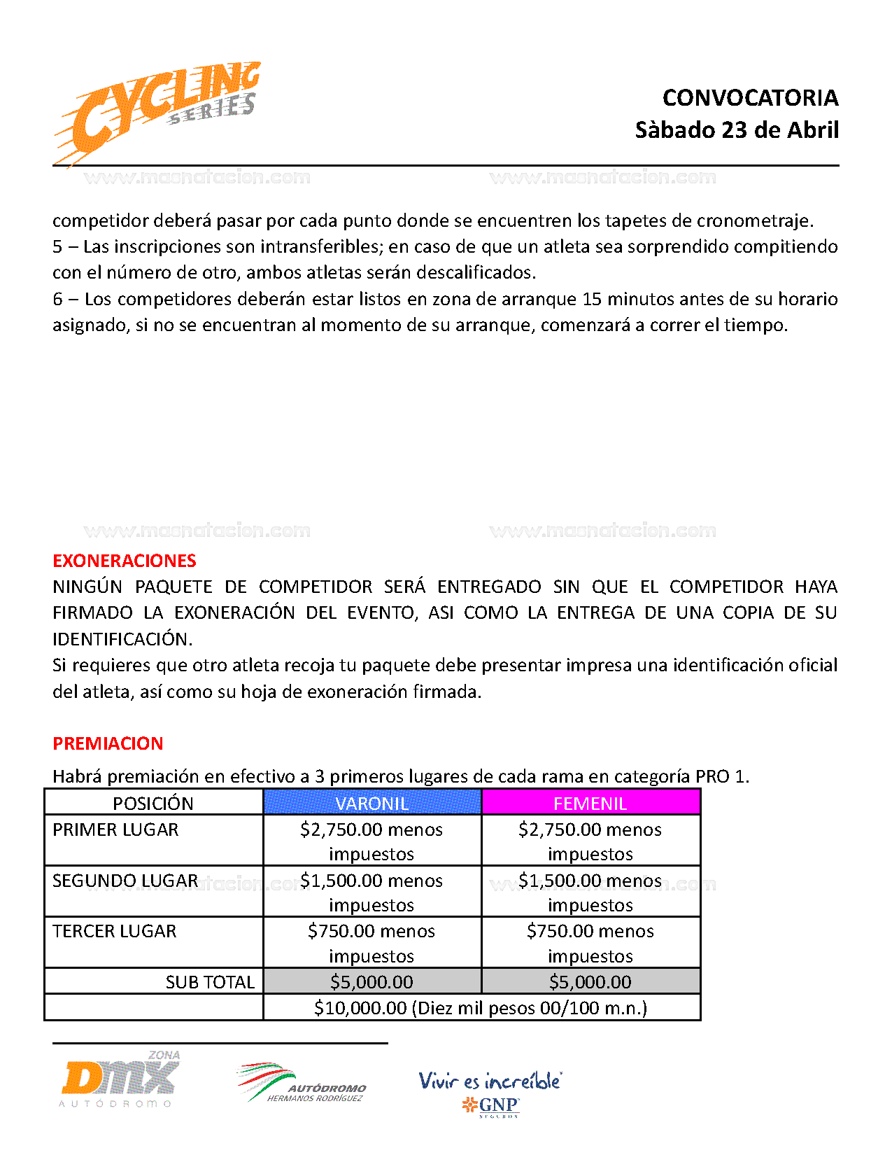 | 12 Vueltas Pro | Pro 1 | Varonil |