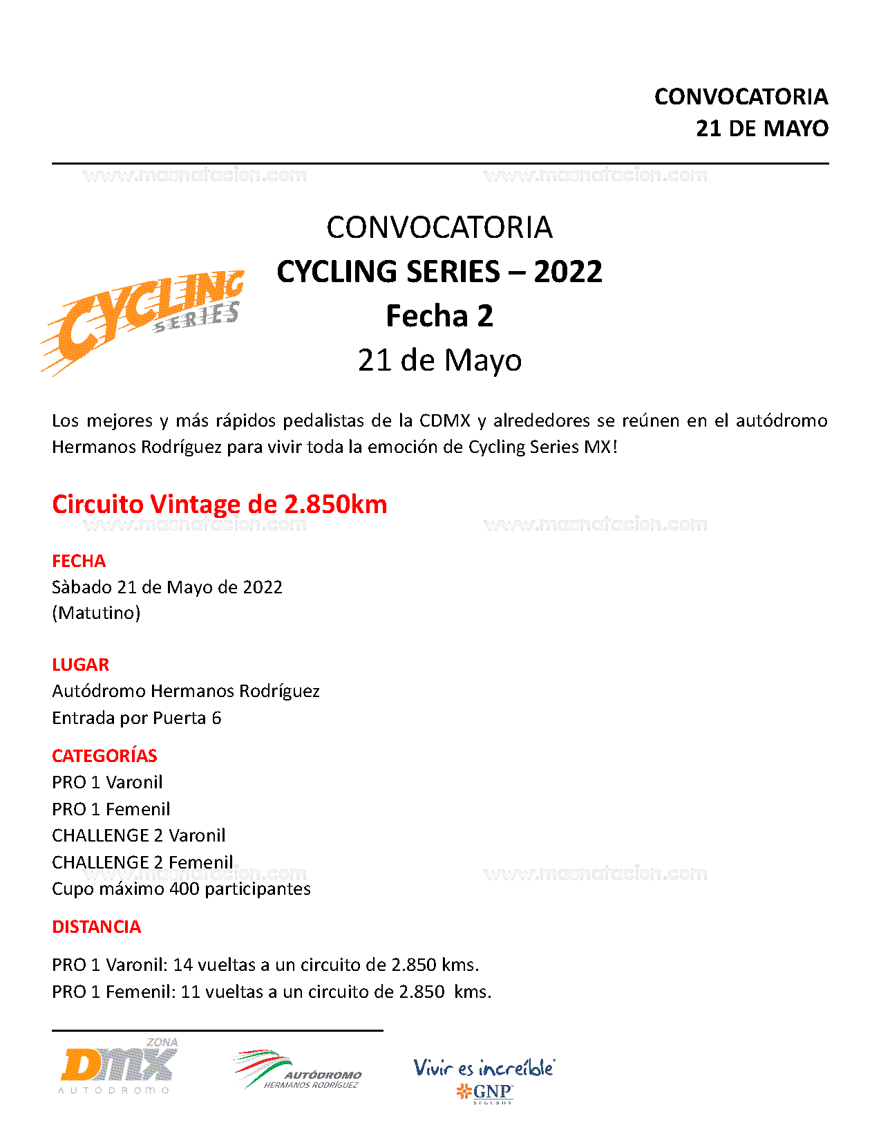 La participación de cada competidor se realizará bajo su absoluta responsabilidad, Zona DMX, GNP SEGUROS y Operadora de Centros de Espectáculos S.A. de C.V. (OCESA), sus empresas filiales y subsidiarias no son responsables de la condición física y estado de salud de los competidores. Así como del óptimo funcionamiento de su bicicleta, en caso de algún siniestro en pista durante la celebración de la competencia se brindará únicamente asistencia médica por paramédicos capacitados y en su caso servicio de ambulancia únicamente para el traslado hospitalario, los gastos de hospitalización, desperfecto mecánico o daños a la bicicleta serán responsabilidad de cada competidor.