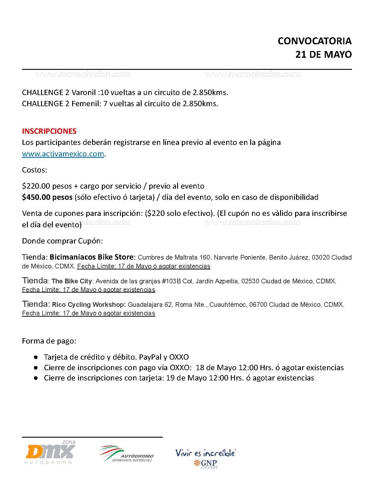 Cierre de inscripciones con pago vía OXXO: 18 de Mayo 12:00 Hrs. ó agotar existencias
