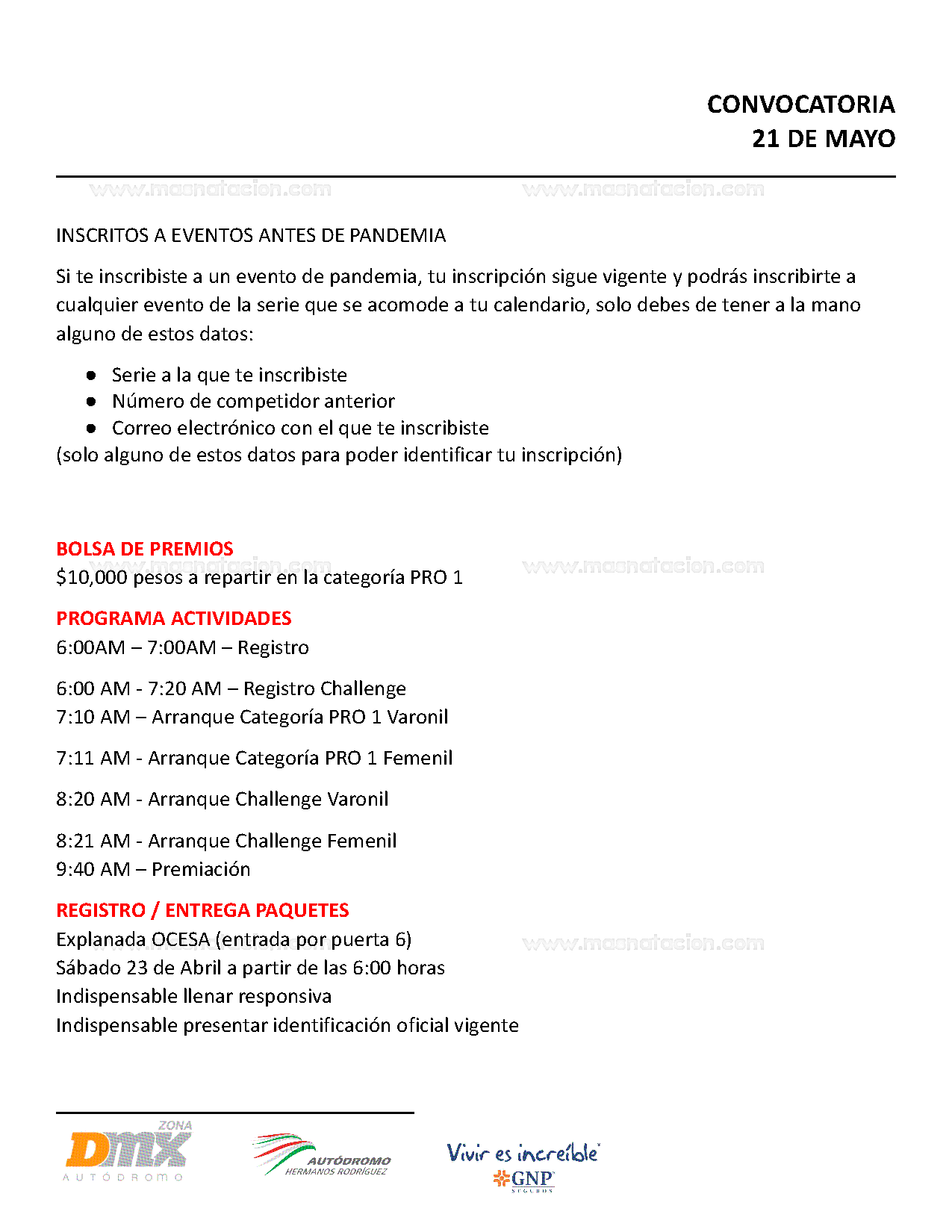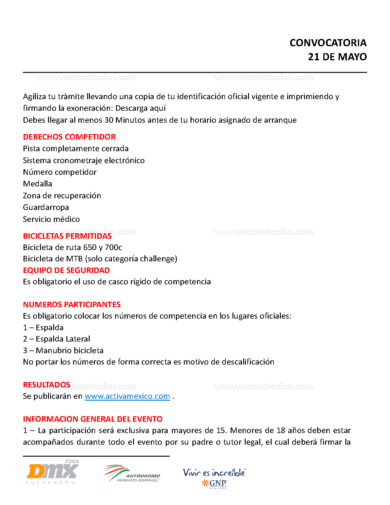 NINGÚN PAQUETE DE COMPETIDOR SERÁ ENTREGADO SIN QUE EL COMPETIDOR HAYA FIRMADO LA EXONERACIÓN DEL EVENTO, ASÍ COMO LA ENTREGA DE UNA COPIA DE SU IDENTIFICACIÓN.